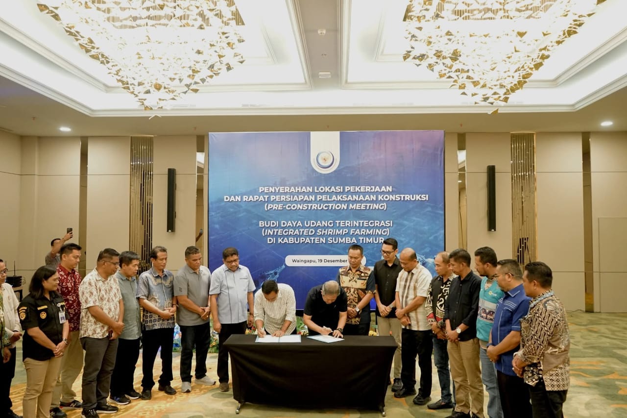 Penyerahan lokasi pekerjaan ini menandai dimulainya pelaksanaan konstruksi kawasan tambak budidaya udang terintegrasi yang berlokasi di Desa Palakahembi, Waingapu, Kabupaten Sumba Timur.