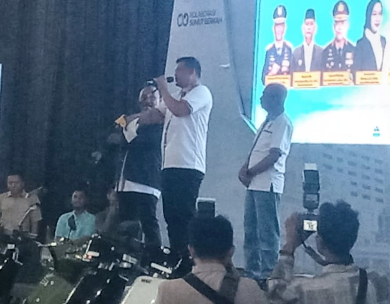 Dan Ketua DPRD Sumut Erni Ariyanti, SH, MKn, Wakil Ketua DPRD Sumut Dr. Sutarto dan Ihwan Ritonga, Pangdam I/BB Mayjen TNI Rio Firdianto dan Danlantamal – I Belawan Brigjen TNI (Mar) Jasiman Purba, SE, CHRMP, Kapolda Sumut Irjen Pol Whisnu Hermawan Februanto, Kajatisu Idianto SH,MH juga hadir di acara mayday 2025 Kolaborasi Sumut Berkah. (Fajaruddin Adam Batubara)