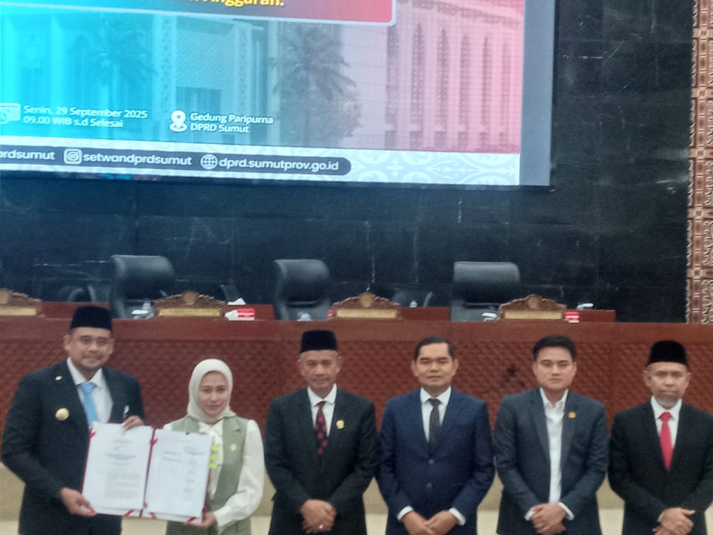 Penandatanganan ini terkait dengan rancangan peraturan daerah (Ranperda) tentang Perubahan Anggaran Pendapatan Belanja Daerah (P-APBD) 2025 Pemerintah Provinsi Sumatera Utara (Pemprovsu) untuk tahun anggaran 2025. Rapat paripurna tersebut dipimpin Ketua DPRD Sumut Erni Ariyanti, SH, MKn, Senin (29/9).