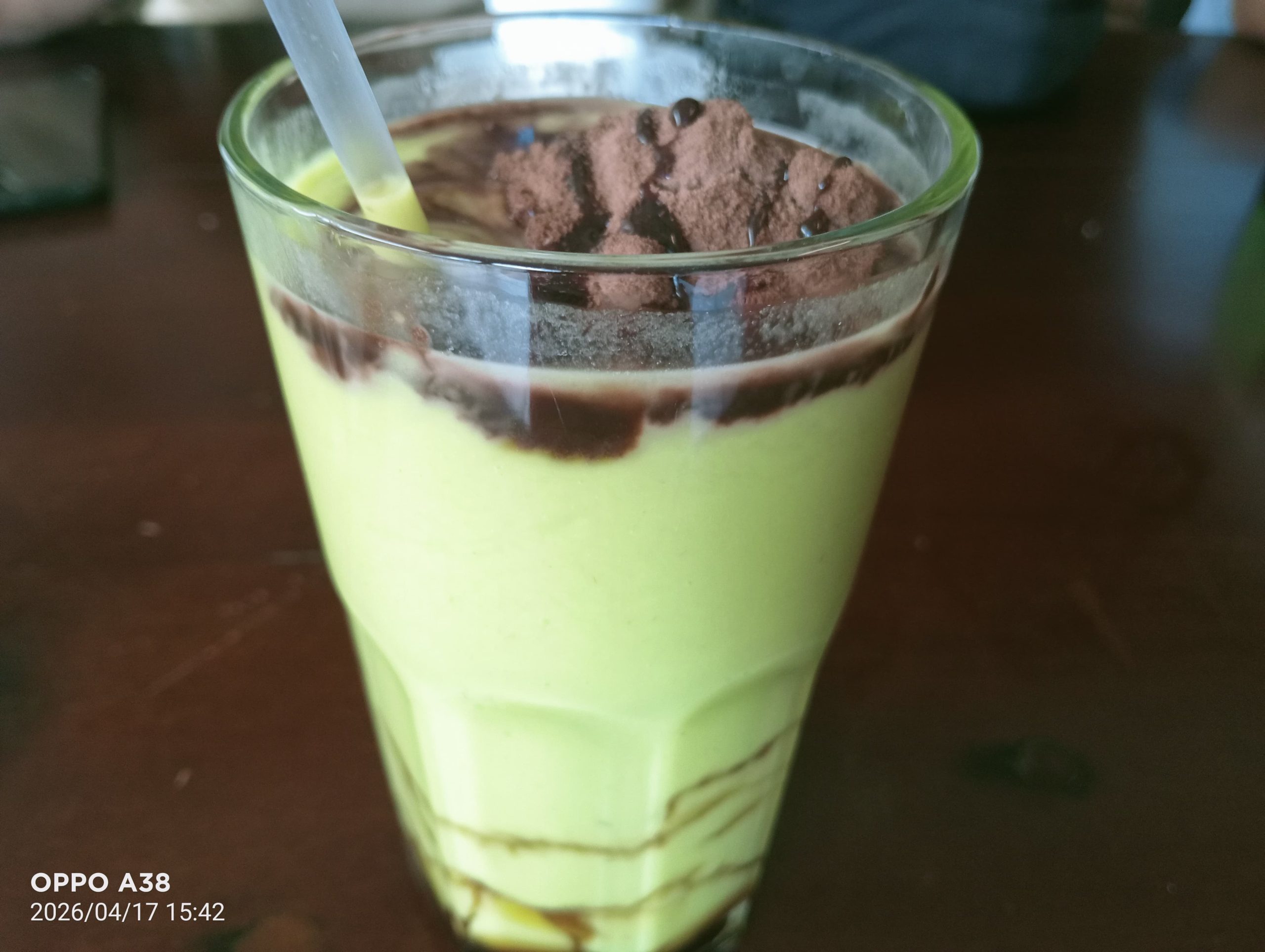 Saat diseruput, rasa manis gula merah langsung terasa di tegukan pertama. Perpaduan alpukat, susu cokelat, dan milo menghasilkan rasa yang seimbang dan nikmat.