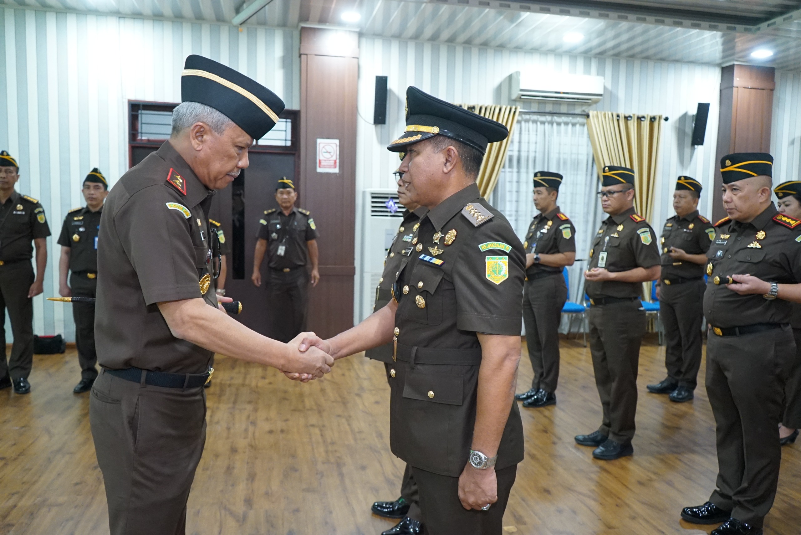 MEDAN, PILAR MERDEKA – Kepala Kejaksaan Tinggi Sumatera Utara (Kajatisu) Idianto SH,MH secara resmi melantik dan menyerahkan jabatan Asisten Pidana Militer (Aspidmil) dari Kolonel Chk. Makmur Surbakti, SH,MH kepada Kolonel Sus Lukas Sambiono, SH mantan Aspidmil Kejati Bali di Aula Sasana Cipta Kerta Lantai 3 Kantor Kejatisu, Jalan AH Nasution, Medan, Selasa (6/5/2025).