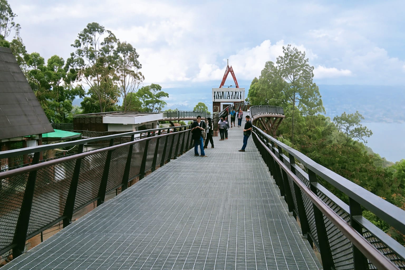Sky Walk fasilitas untuk wisatawan berjalan sambil menikmati pemandangan Danau Toba. (Foto. Pilar Merdeka)