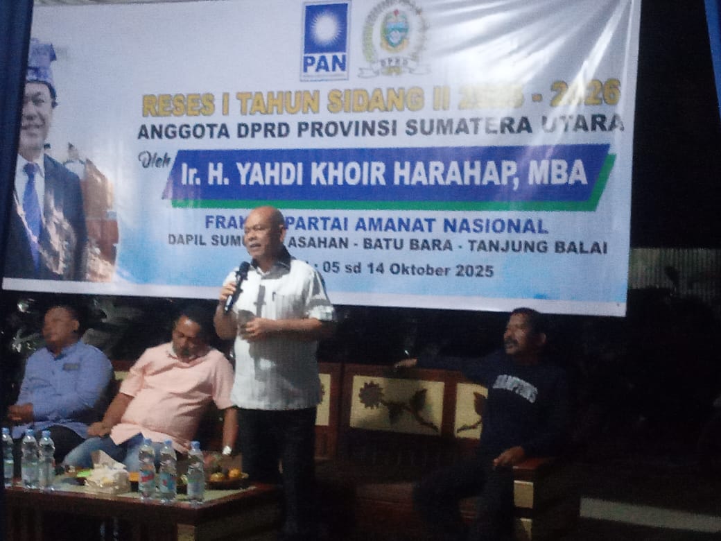 BATU BARA, PILAR MERDEKA – Dalam kegiatan reses, kami menyahuti aspirasi masyarakat dan menjalankan aspirasi tersebut. “Aspirasi masyarakat ditampung dan didengarkan dengan baik,” ujar Yahdi Khoir Harahap, anggota DPRD Sumatera Utara (Sumut) yang juga Ketua Fraksi Partai Amanat Nasional (PAN) DPRD Sumut.