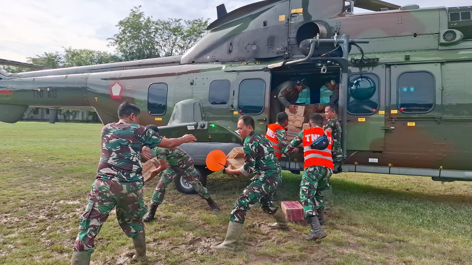 Bantuan tersebut dikirim dalam dua sortie penerbangan, yang terdiri dari sembako, air minum, serta perlengkapan khusus yang sangat dibutuhkan warga. Untuk mendukung kelancaran operasi udara, TNI AU menyiagakan tiga helikopter Caracal di Lanud Roesmin Nurjadin, sebagai bentuk kesiapsiagaan dalam menjangkau daerah terdampak yang sulit diakses melalui jalur darat.