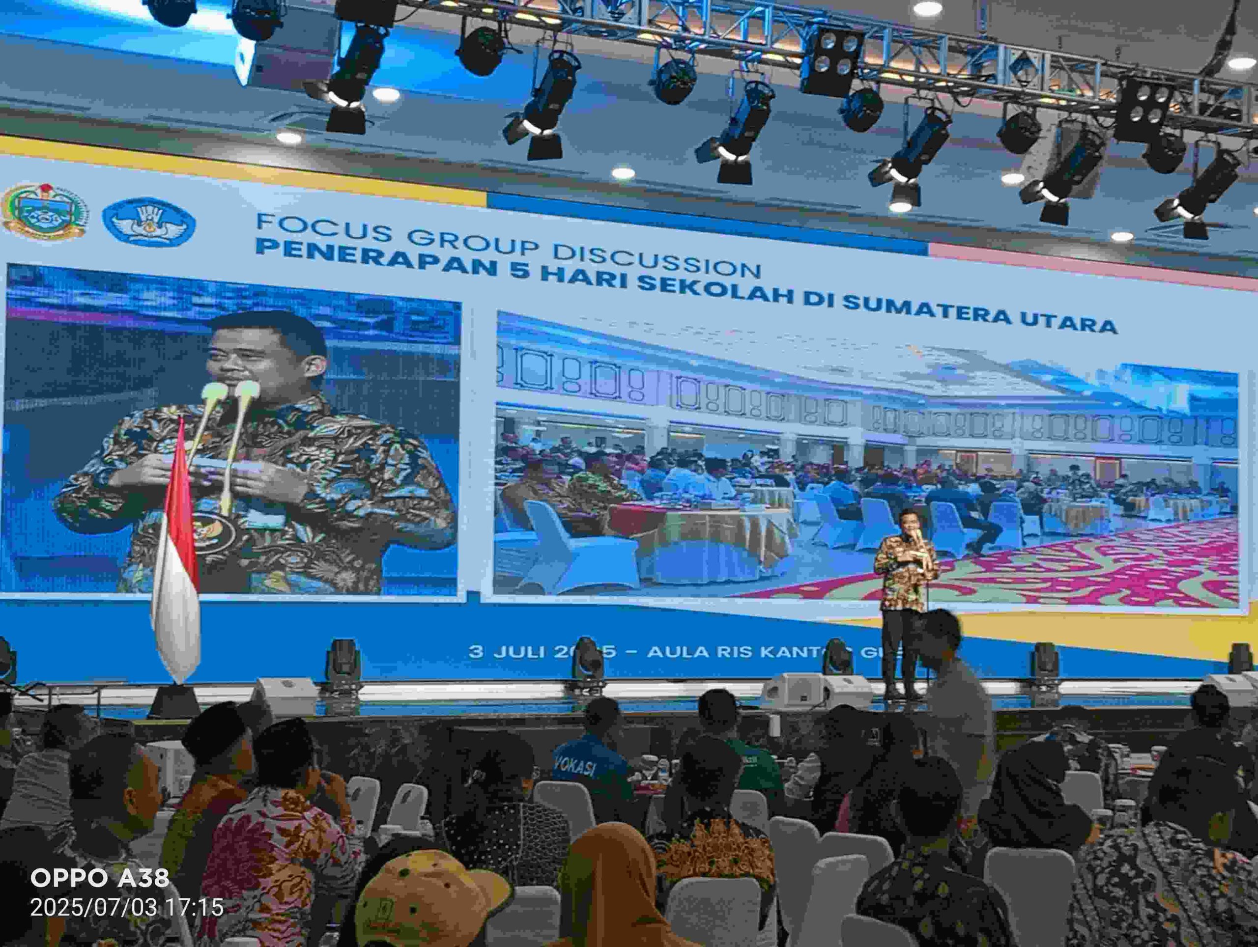MEDAN, PILAR MERDEKA – Wacana lima hari sekolah pada Tahun Ajaran Baru bagi siswa dan siswi di Sumatera Utara resmi dibuka dalam Focus Group Discussion oleh Gubernur Sumatera Utara (Gubsu) Muhammad Bobby Afif Nasution.