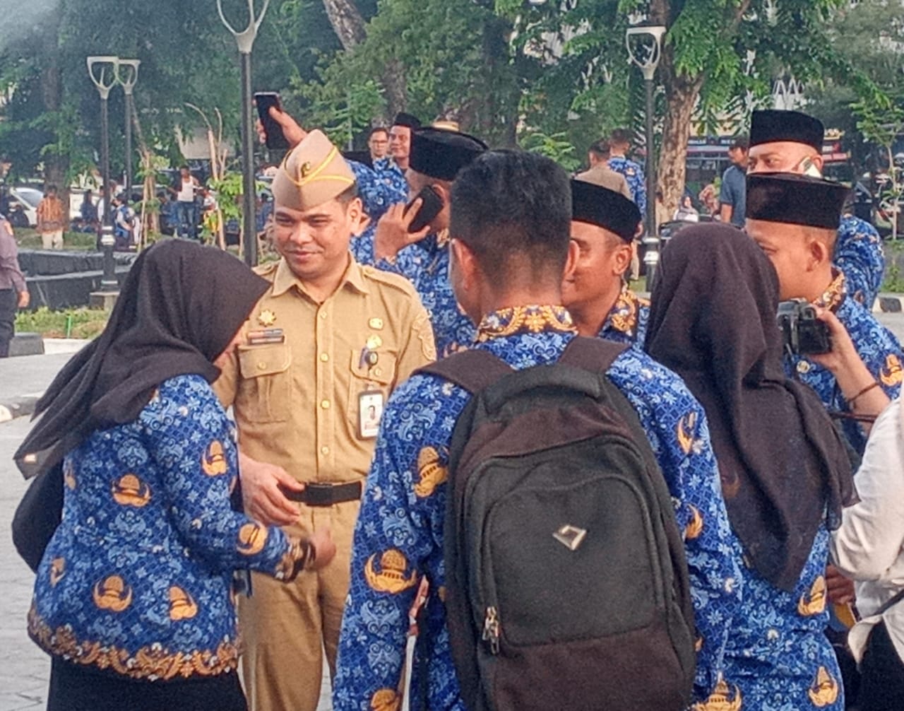 Tatkala melihat Kepala Badan Kepegawaian dan Pengembangan Sumber Daya Manusia (BKPSDM) Pemko Medan Subhan Fajri Harahap, S.STP, MAP yang tengah berdiri di belakang mimbar kehormatan lapangan Merdeka, PPPK Pemko Medan tadi langsung bergerak menyerbu, datang beramai-ramai.