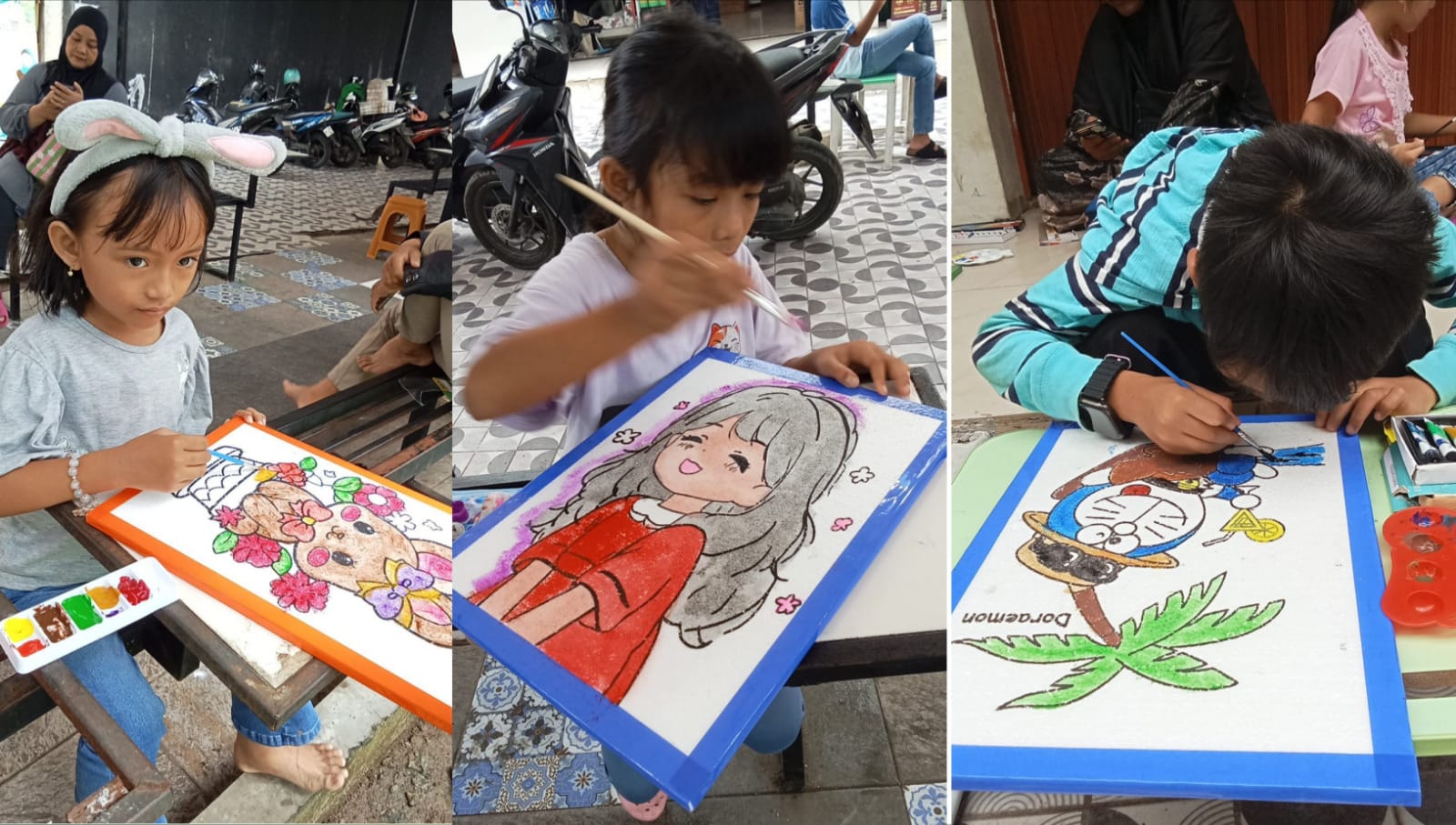 Semua anak tersebut mengikuti Kelas Melukis Sanggar Obor Sakti yang untuk pertama kalinya digelar di ruang terbuka.