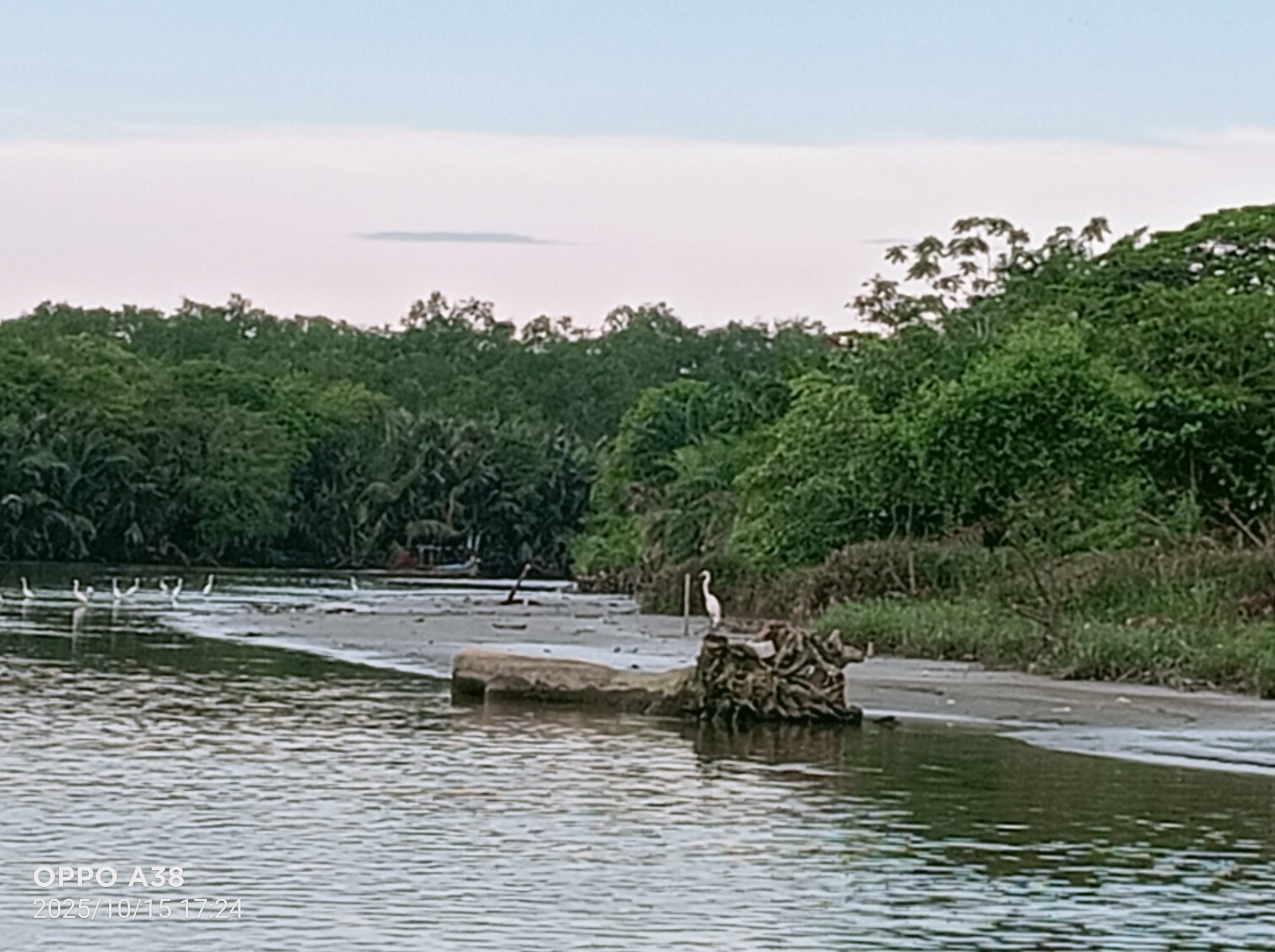 Sekitar Jam 16.30 WIB, kelihatannya air sedang surut sehingga terlihat muara di bagan dangkal. Saat bersamaan tampak sebuah perahu nelayan yang dilengkapi peralatan penangkap sedang mengarah ke laut. Mungkin waktu pada kondisi itu merupakan kebiasaan nelayan melaut. Di muara yang sama, sebuah perahu mengangkut daun nipah bahan pembalut rokok, istilahnya rokok daun.